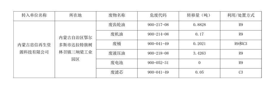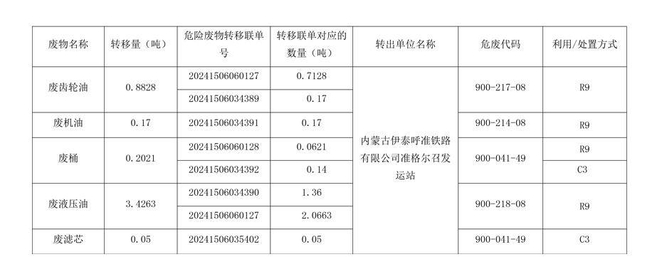 内蒙古富联娱乐呼准铁路有限公司准格尔召发运站 2024年度危险废物信息公开